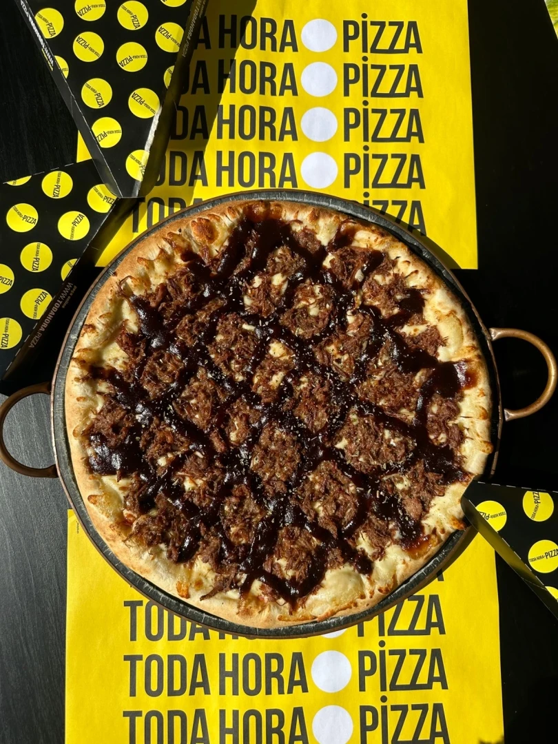 ✨EDIÇÃO LIMITADA✨ Pizza BROTO 20cm - Rende 6 fatias pequenas Uma deliciosa mistura de Chocolate ao leite, recheio Fini Bananinha e balinhas fini. Rende 6 fatias pequenas.